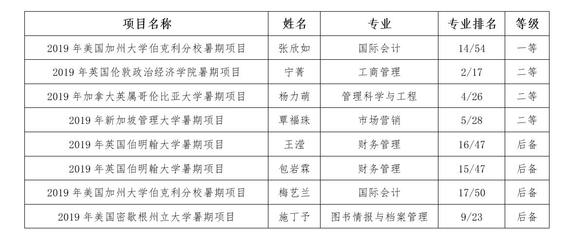 经学生本人申请、院系审核后,学院现将有关推荐结果予以公示。