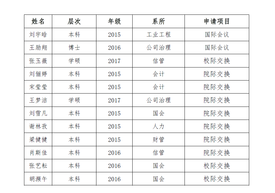 根据学院《jbo竞博官网登录学生国际交流项目资助计划(第一批)》通知,经学生报名和学院审核,最终评出刘宇晗等12位同学为资助对象,现予公示,公示名单附后。
