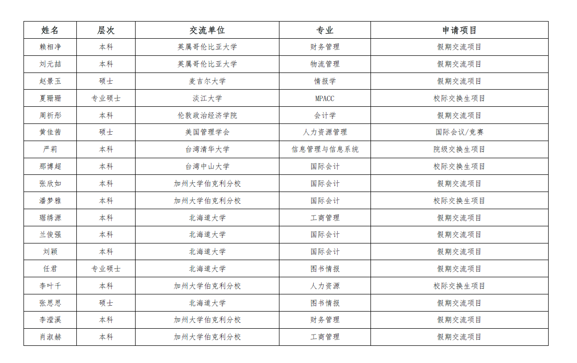 根据学院《jbo竞博官网登录学生国际交流项目资助计划(第二批)》通知,经学生报名和学院审核,最终评出赖相净等18位同学为资助对象,现予公示,公示名单附后。